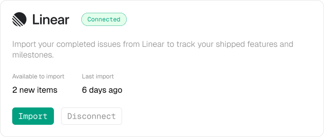 Connect and import directly from GitHub and Linear. No manual copying and pasting.